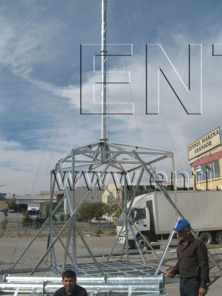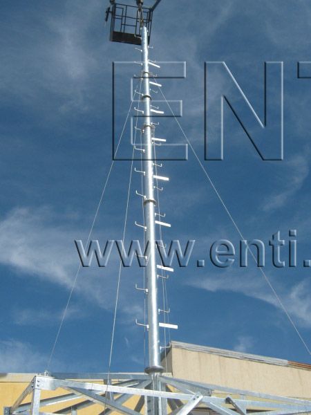 | سلم محمول يمكن وضعه لوصول العمال إلى رأس العمود، وبعد انتهاء العمليمكن إزالته من مكانه |