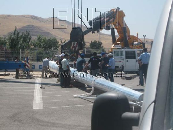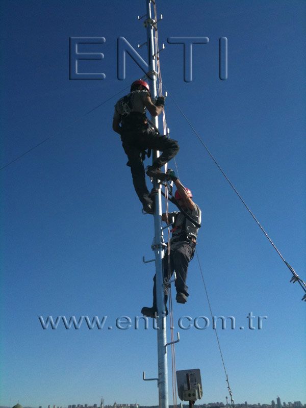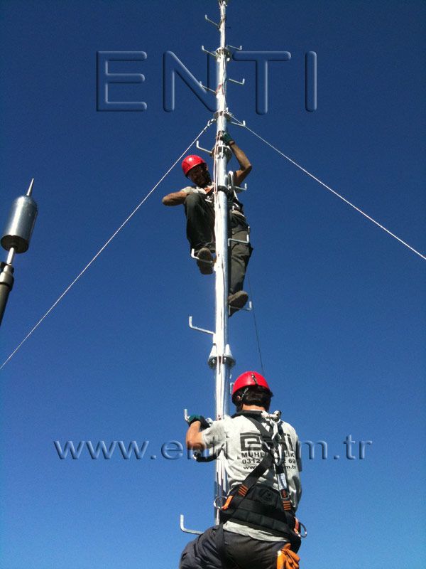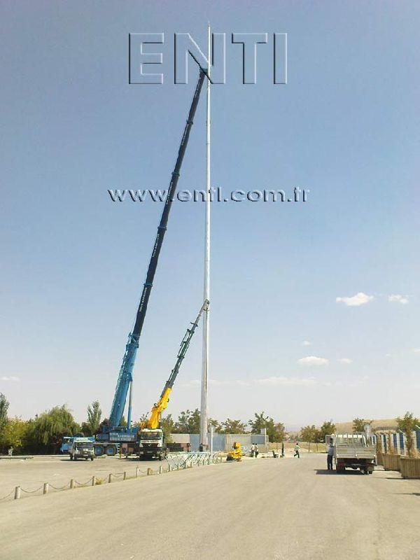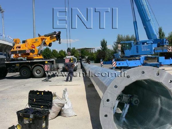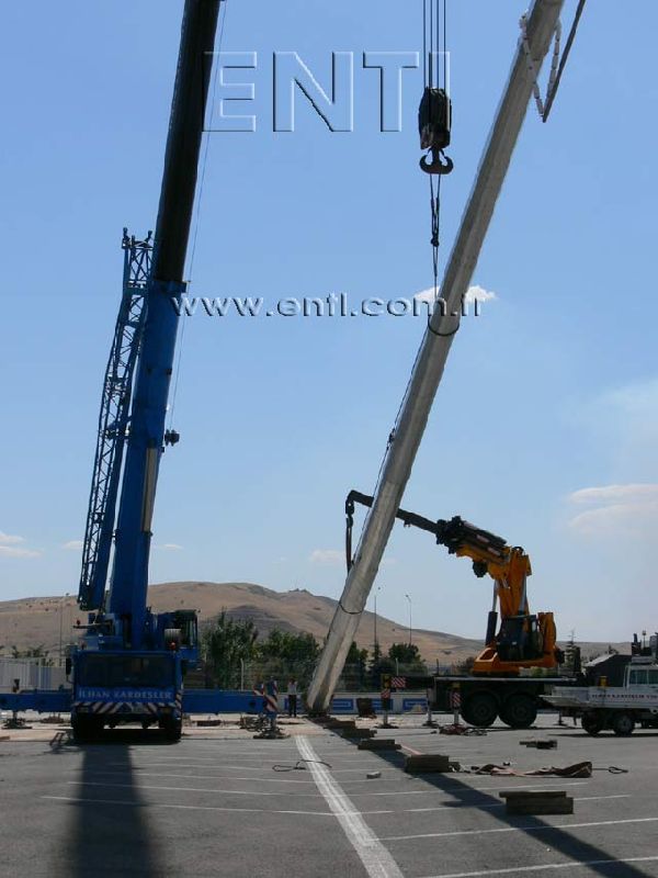 الرافعة : نوع الرافعة التي يجري استعمالها في التركيب يختلف تبعاً للظروف المحيطة ولنوع العمود. في الظروف العادية نحتاج إلى رافعة يصل ارتفاع ذراعها كحد أدنى إلى 25 متراً لأجل تركيب أعمدة طولها 30 متراً. يمكن أن يكون هناك حاجة إلى رافعة يصل ارتفاع ذراعها إلى 50 متراً تبعاً للظروف المحيطة بالعمل.