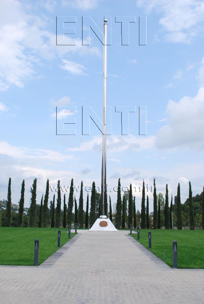 Azerbaycan Şehitliği için üretilen paslanmaz çelik payrak direği Direk Tipi: Dairesel Konik DirekMalzeme: AISI 316 Paslanmaz ÇelikBayrak indirme kaldırma mekanizması: Asansörlü / uzaktan kumandalıTepe sistem: Sonsuz Dönerli tepe sistem.Yüzey: Parlak Polisaj